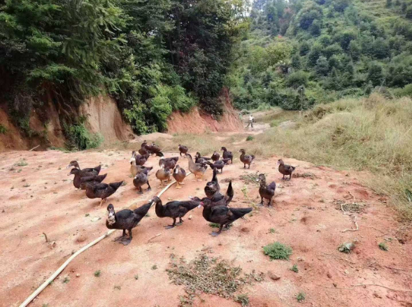 山地间,成群土鸡振翅啄食,羽色在阳光下泛着油亮光泽;田埂上,鸭鹅列队而行,“嘎嘎” 鸣声与山间清风交织,勾勒出最鲜活的乡野图景。