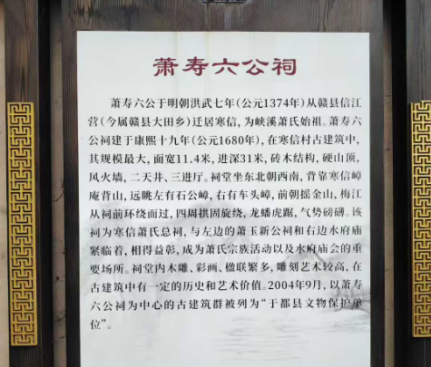 水府庙的 “水神之灵” 与寿六公祠的 “祖脉之盛”,在这片山水中交融共生,不仅是萧氏族人的精神根基,更是赣南地区传统风水文化与人文历史深度融合的鲜活见证。