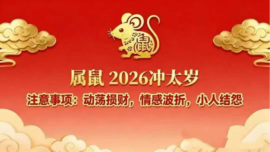 生肖鼠(子)与太岁马(午)形成“子午相冲”,此为六冲之首,力量最为直接强烈。冲太岁常象征突然的变动、冲击、口舌是非或远行奔波。需注意出行安全,防范人际关系冲突与意外变故。