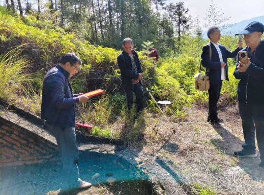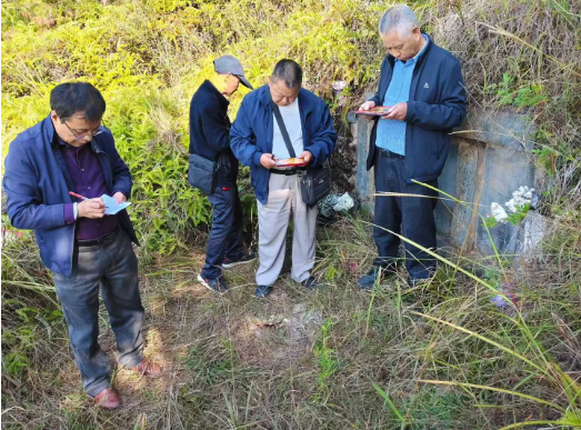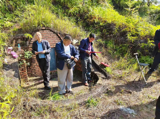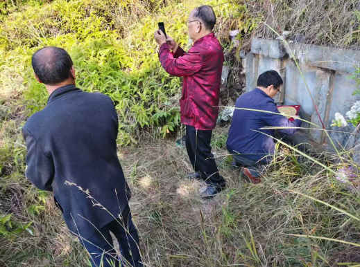 于都杨公地理文化研究院 陈蔚明院长取出罗盘实测,高声报出:"墓立艮山坤兼丑未,分金精准!"