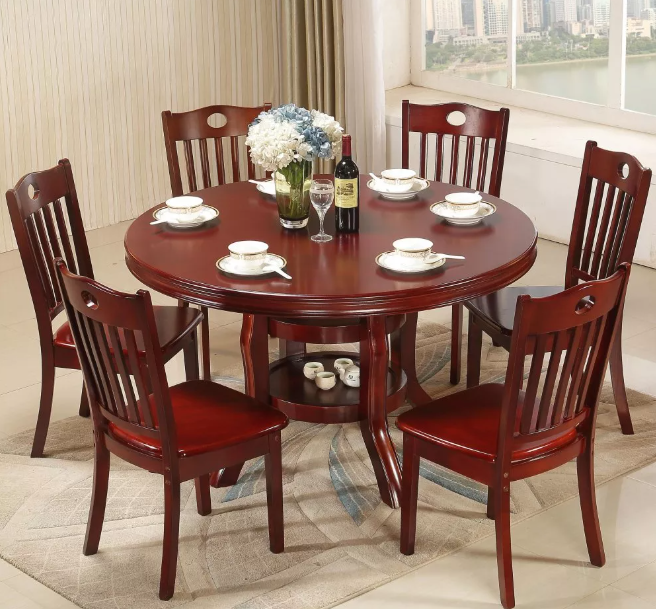 • 圆形餐桌:形如满月,象征团圆美满,能聚拢人气,让家人围坐时没有距离感,促进情感交流,增强家庭向心力。圆形无棱角,不会产生 “尖角煞”,气场流通顺畅,能带动财运循环,尤其适合人口较多的家庭,寓意 “阖家团圆、家业兴隆”。
