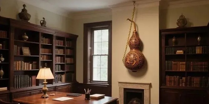 铜制或天然葫芦悬挂在客厅梁下或窗边,既可净化空间,又能提升家宅运势,尤其适合空置房长期摆放。