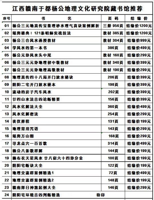 新年伊始,万象更新。于都杨公地理文化研究院在众多新老易友的殷切期盼中,正式开启新年度堪舆、预测、择日、四柱等核心典籍资料的重印发售。